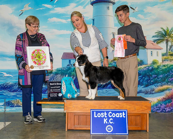 At a little over 6 months old, Whitney is potty trained, leash trained, crate trained, dog/cat exposed, great with grooming & road trips, and is a sweet girlie-pop just looking to be loved. She has good potential for herding, having a touch higher drive than her other female siblings, with what seems like a natural instinct. With that being said, she still has a great offswitch and is overall a medium drive demeanor. We expect she may have one more growth spurt at 9 months old, and may mature between 35-40#. She will still pass as a great, medium sized dog.